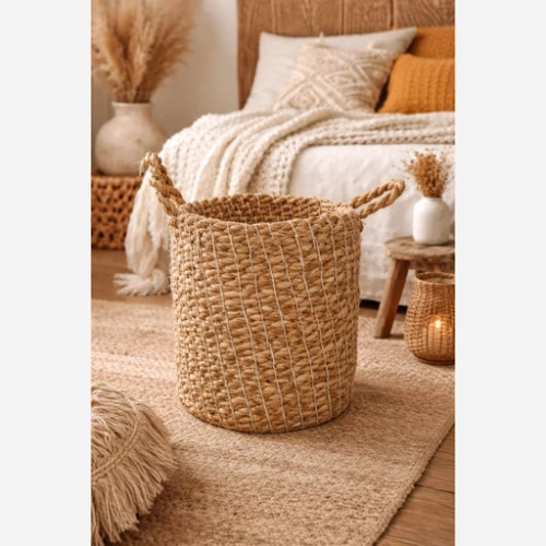 2. سبدها و باکس‌های سازماندهی (حصیری و چوبی)