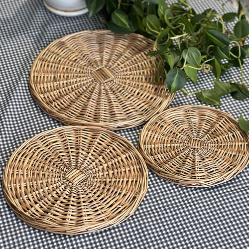 ست زیربشقابی و زیرقابلمه ای حصیری مدل مروار _ سه تکه