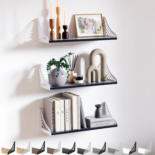 * طراحی مینیمال و پاک: هیچ براکت یا پیچ بیرونی، تمرکز بیننده را بر روی محتویات قفسه و زیبایی دیوار برهم نمیزند.