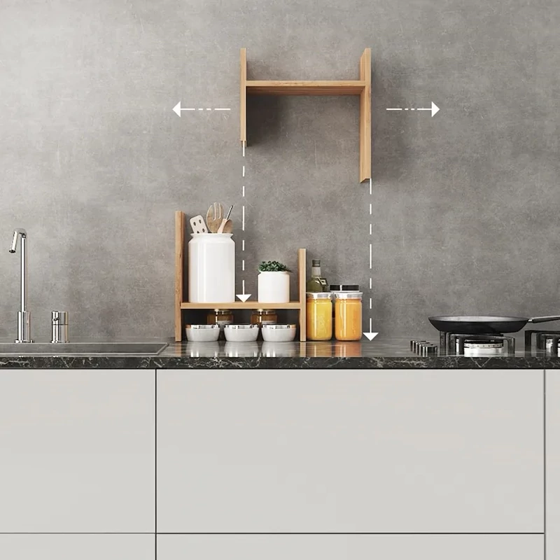 تعداد و فاصله طبقات: نیاز خود را بررسی کنید. طبقات با فاصله کم برای فنجان و ادویه، و طبقات با فاصله زیاد برای دستگاههایی مانند آسیاب، مخلوطکن یا هواگیر مناسبترند. برخی مدلها قابلیت تنظیم ارتفاع طبقات را دارند.