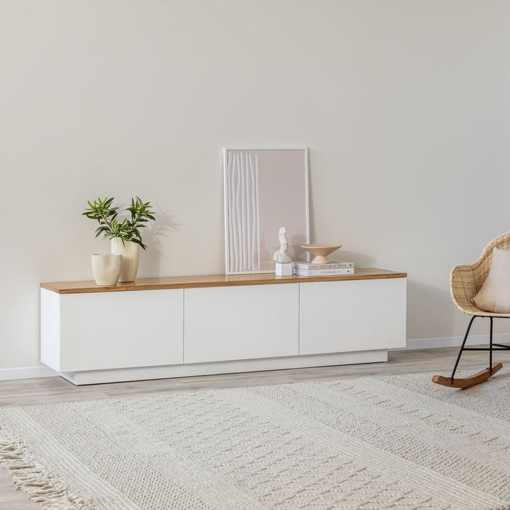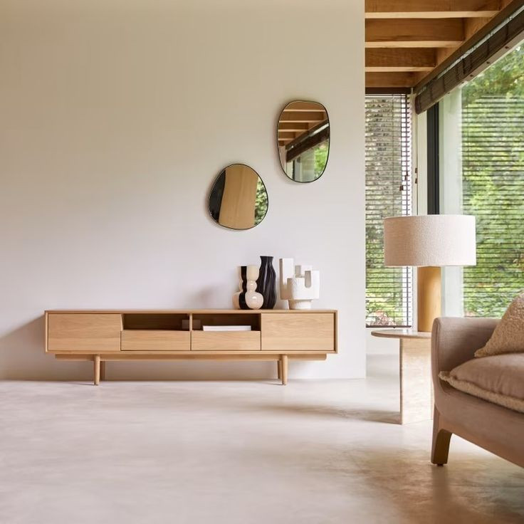 • یک میز تلویزیون کم‌ارتفاع و عریض برای مرکز اتاق نشیمن.