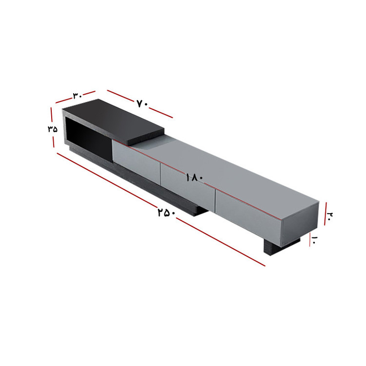 میز تلویزیون دوتکه DL250M-tv این میز ساخته شده از جنس ام دی اف با هدف قراردادن مفهوم زیبایی در عین سادگی در دوتکه ساخته شده که می توانید طول آن را کم یا زیاد بکنید میزی کاربردی که برای فضایی مدرن و اسپورت طراحی شده و دارای دو درب داشبردی بزرگ و یک کشو جادار برای جانمایی انواع گیرنده ها و اکسسوری های مورد نیا، بسیار کمجا و شیک مناسب خانه های آپارتمانی، با توجه به اینکه صفحه پشت جای ورود و خروج انواع کابل را دارد از شلوغی های اطراف تلویزیون کم و جلوه مرتب و با انضباطی به اطراف تی وی میدهد، لطفا دقت کنید که این میز در حالت ترکیب مشکی و رنگهای دیگر ارسال میشود به عنوان مثال با انتخاب رنگ سفید ترکیب (سفید،مشکی) و با انتخاب رنگ نقره ای ترکیب (نقره ای،مشکی) ارسال میگردد. میز تلویزیون DL250M-tvاز جنس ام دی اف ساخته شده و برای تهیه جنسهای مختلف و تهیه ابعاد بزرگتر یا کوچکتر لطفا دیگر محصولات دلفان دکور را ببینید. برای انتخاب رنگ دلخواه کاتالوگ را در تصاویر ببینید. ابعاد و اندازه های دقیق در تصاویر محصول ثبت شده لطفا با دقت بررسی کنید سپس سفارش خود را نهایی کنید. لازم به ذکر است میز جلومبلی DL250M-jmبرای ست شدن با این میز طراحی شده است و با خرید هردوی این کالا یک ست کامل و زیبا خرید خواهید کرد.