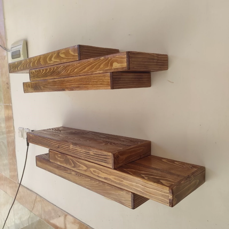 شلف دیواری پایه مخفی ((تکی)) (((ویدیو ثبت شده متعلق به پایه های داخلی کار میباشد بدنه این محصول از چوب روسی میباشد بدنه محصول مشابه عکس اول))) روکش شلف و باکس این شلف ها از نوع چوب نراد روسی می باشد که پایه های مقاوم MDF دوبله داخلی نیز مجهر میباشند محصول همراه با یراق کامل برای اتصال به دیوار ارسال میشود شما میتوانید رنگ محصول را در کرم (خود رنگ چوب ) ویا قهوه ای روشن تیره نرمال تهیه کنید