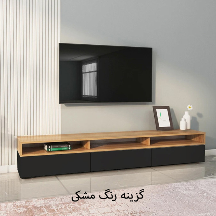 با رنگ مشکی لوکس و خطوط تمیز، جلوهای مدرن و شیک به فضای شما میبخشد و در عین حال سازماندهی وسایل جانبی مانند کنسول بازی، سینمای خانگی و دکوریها را ساده میکند.
