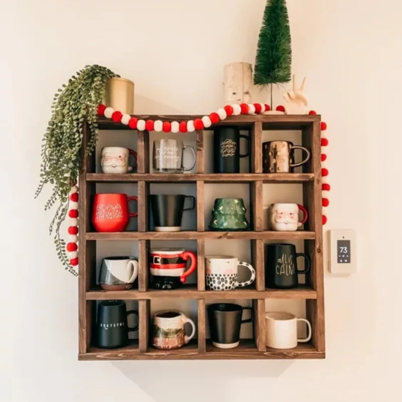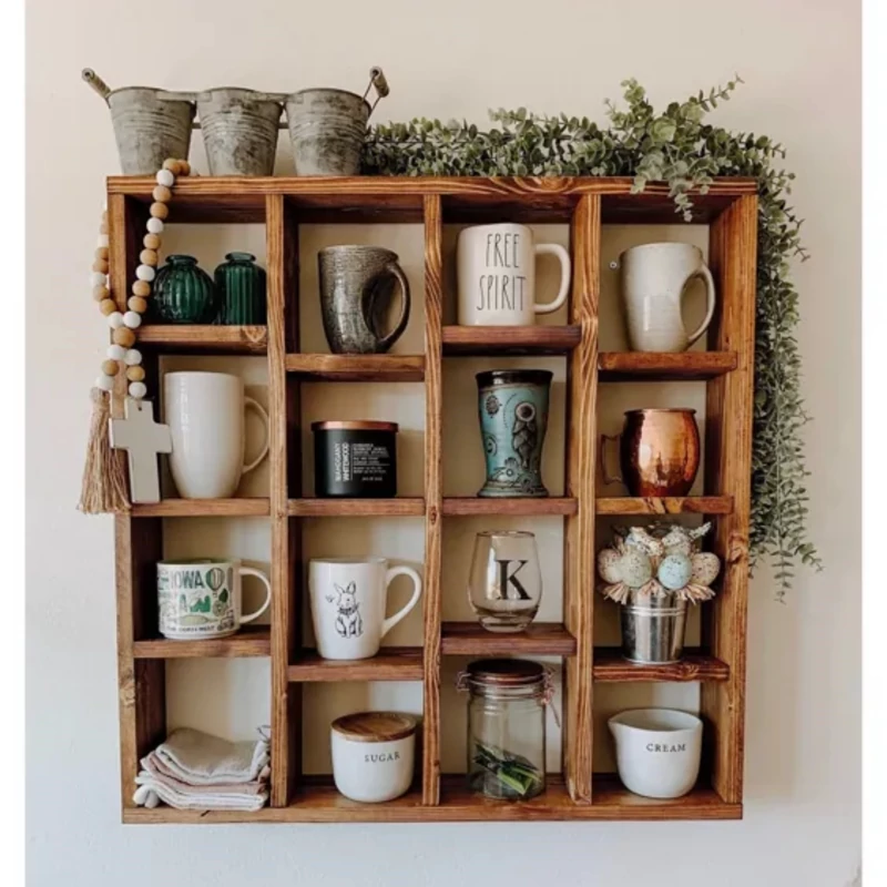 | کاربرد اصلی | شلف نمایش و نگهداری ماگهای چوبی، شیشههای ادویه، گلدانهای کوچک یا اشیای تزئینی |