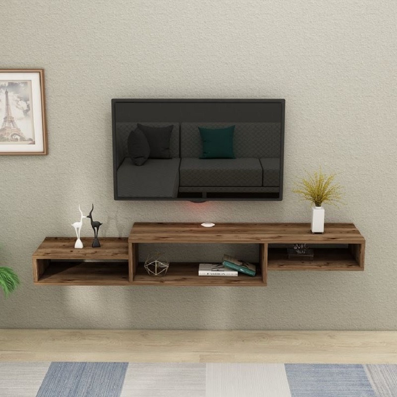 میز تلویزیون دیواری مدل بارمان ساخته شده از نئوپان روکش ملامینه درجه یک و نوار پی وی سی دو میل ساخته شده است.این محصول به همراه پیچ و رولپلاک برای نصب به دیوار ارسال می شود.