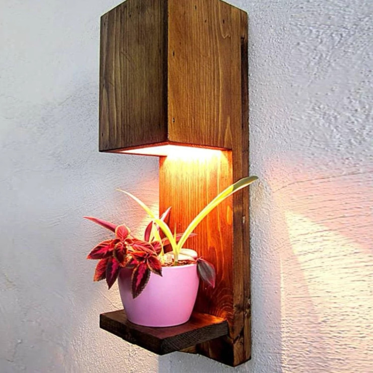 شلف دیواری گلدان چراغ دار تمام چوب روسی