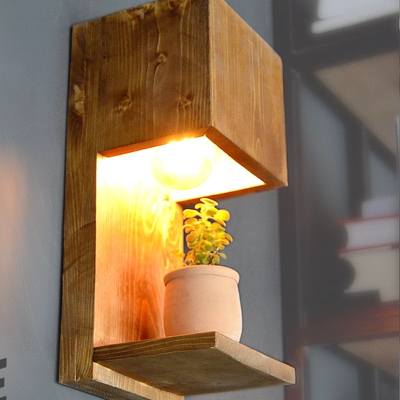 شلف دیواری گلدان چراغ دار تمام چوب روسی