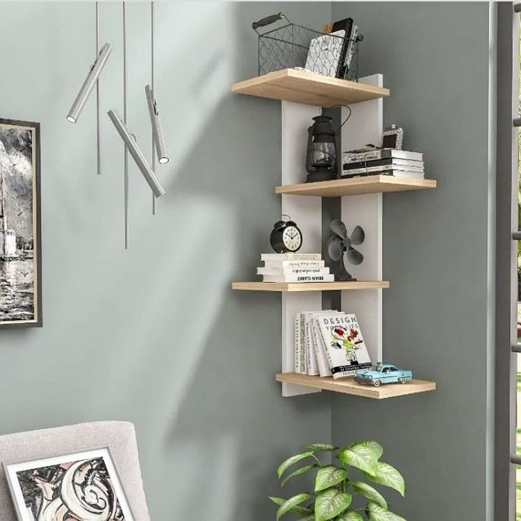 شلف کنجی ، قفسه گوشه ای تمام mdf پاک چوب