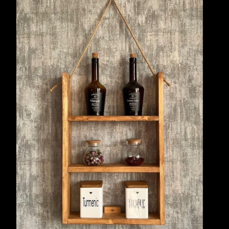 شلف دیواری تمام چوب کبوده داری یراق برای اتصال به دیوار و طناب نگه دارنده محصول رنگ نمیخوره فقط یک لایه کیلر برای براقی به محصول پاشیده میشه ابعاد هر طبقه از شلف ارتفاع 25طول 40 عرض 15 کیلر مورد استفاده روی محصول از نوع ضد آب می باشد ایعاد طبق خاسته شما قتبل تغییر می باشند لطفا قبل از سفارش محصول موجود در باسلام در گفتگو با ما هماهنگ باشید محصول بصورت خام و مونتاژ نشده ارسال خواهد شد که زحمت مونتاژ کردن محصول با خودتون هست