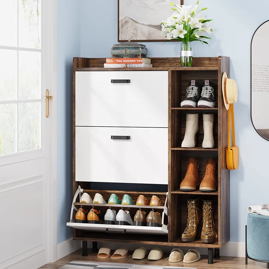 · دسترسی فوقالعاده آسان: کشوهای تاشو (Flip-out) این امکان را میدهند که بدون نیاز به فضای اضافه برای باز شدن درب، به سرعت به کفشها دسترسی داشته باشید. این طراحی برای راهروهای باریک عالی است.