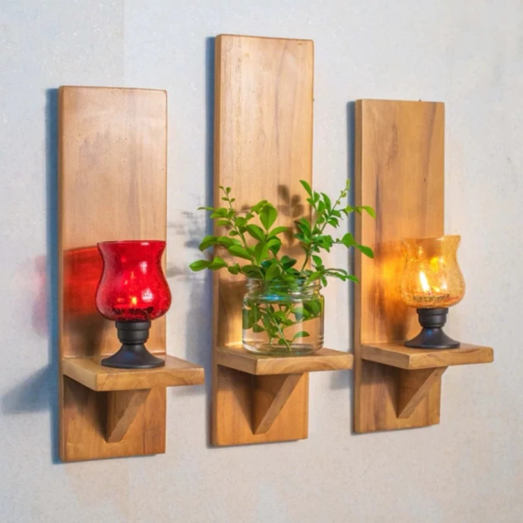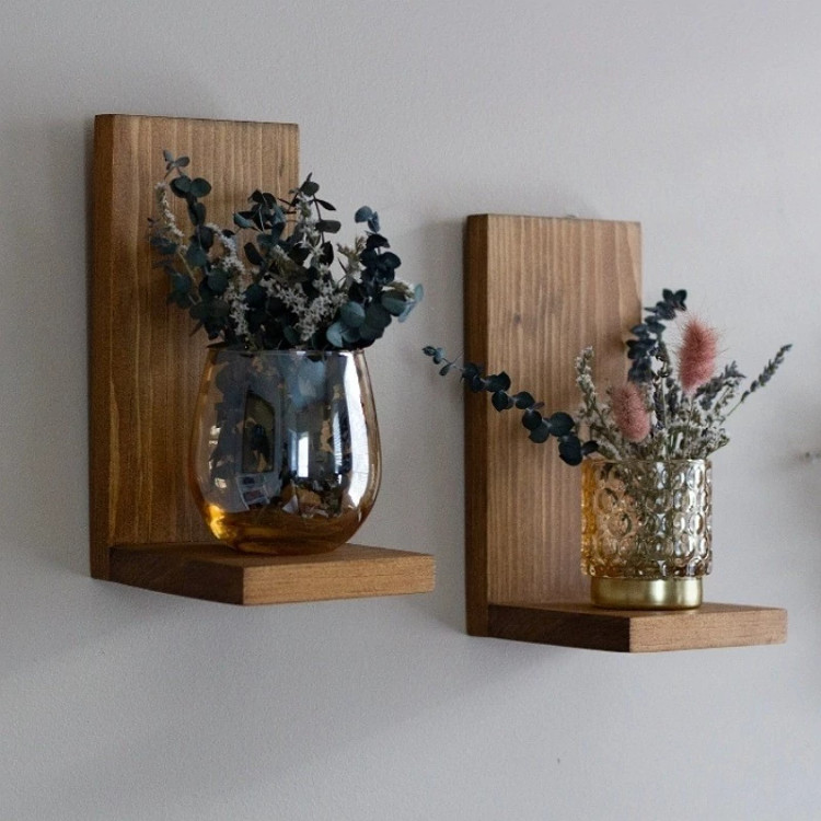 شلف دیواری گلدان تمام چوب روسی ست دوعددی با قابلیت شخصی سازی