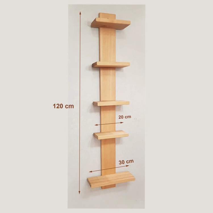 شلف کنار آینه تمام چوب از چوب روسی ساخته شده و 100% ضد رطوبت محیط است. این شلف دارای پنج طبقه که طول طبقه پایین 30 سانتیمتر و دیگر طبقات 20 سانتیمتر و ارتفاع کل 120 سانتیمتر است. از این محصول میتوان در اتاق خواب یا سرویسهای بهداشتی استفاده کرد.