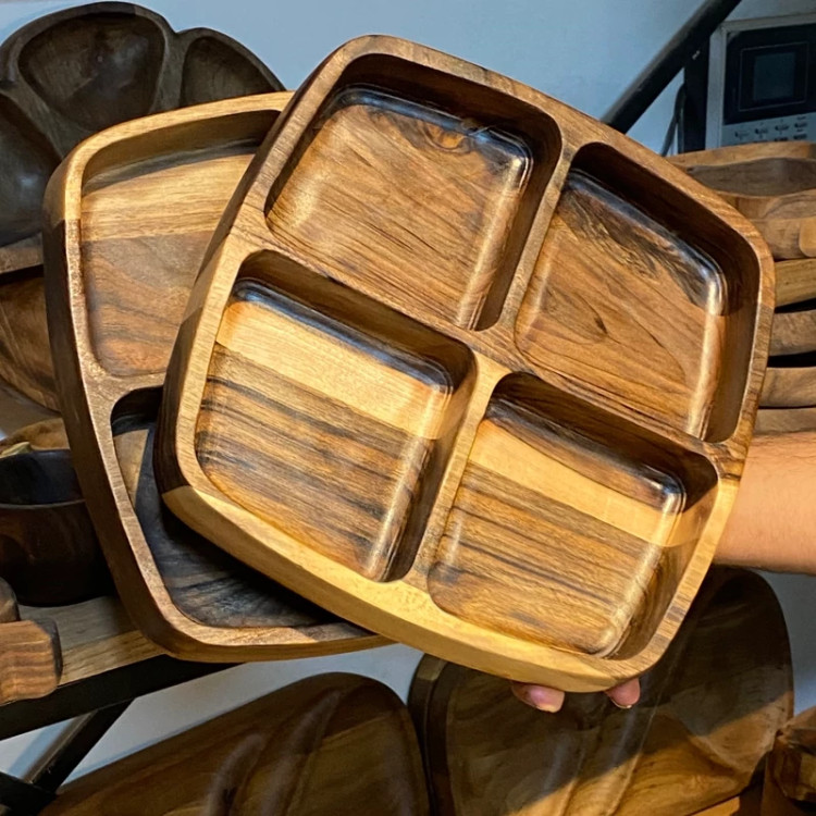 ظروف چوبی مربع چهار خانه