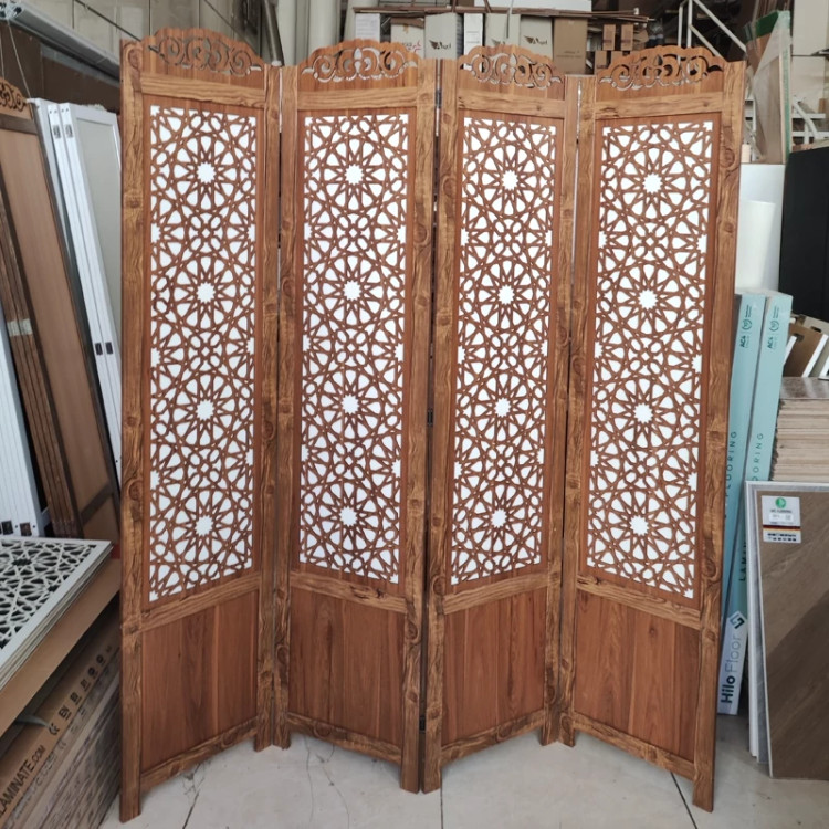 پاراوان پارتیشن چهارلنگه مشبک طرح ارسی تک رو و قابل حمل و تاشو از جنس MDF