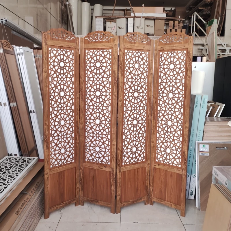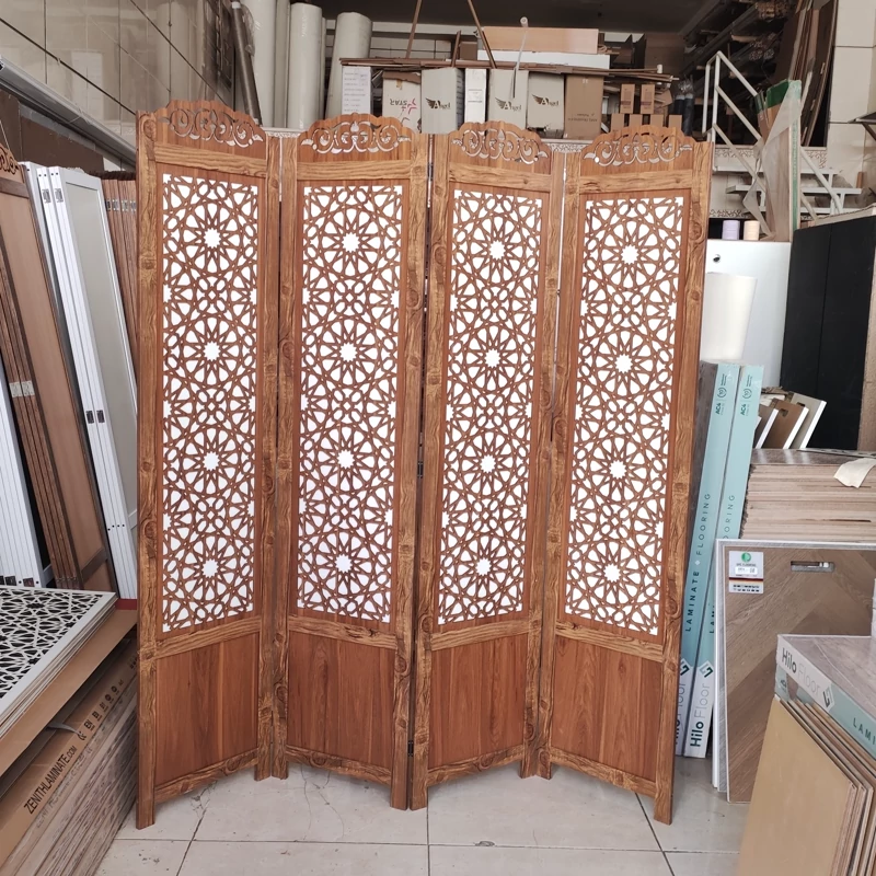 پاراوان پارتیشن چهارلنگه مشبک طرح ارسی تک رو و قابل حمل و تاشو از جنس MDF