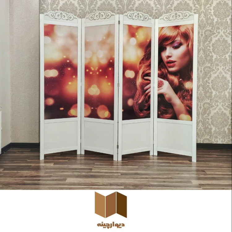 پاراوان پارتیشن چهارلنگه سفارشی تک رو وتاشو جنس MDF و کاغذچاپی با گرماژ بالا
