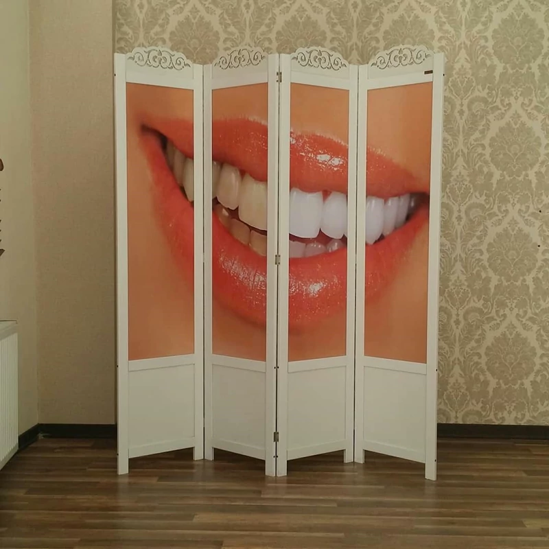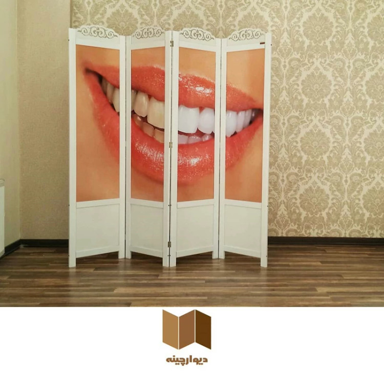 پاراوان پارتیشن چهارلنگه طرح لبخند تک رو و تاشو جنس MDF و کاغذ چاپی با گرماژ