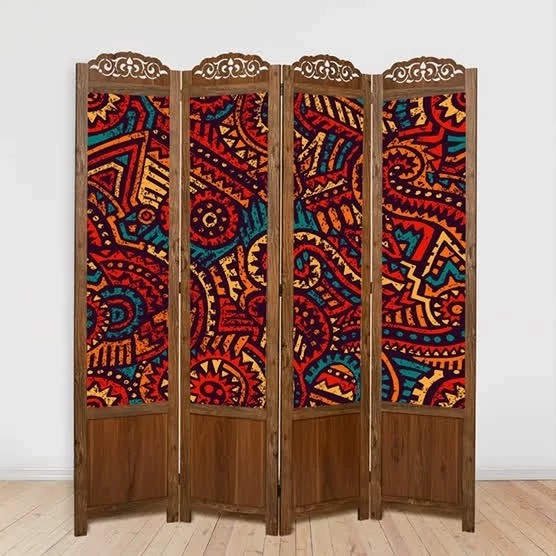 پاراوان چهارلنگه طرح هندسی تک رو و تاشو جنس MDF و استیکر