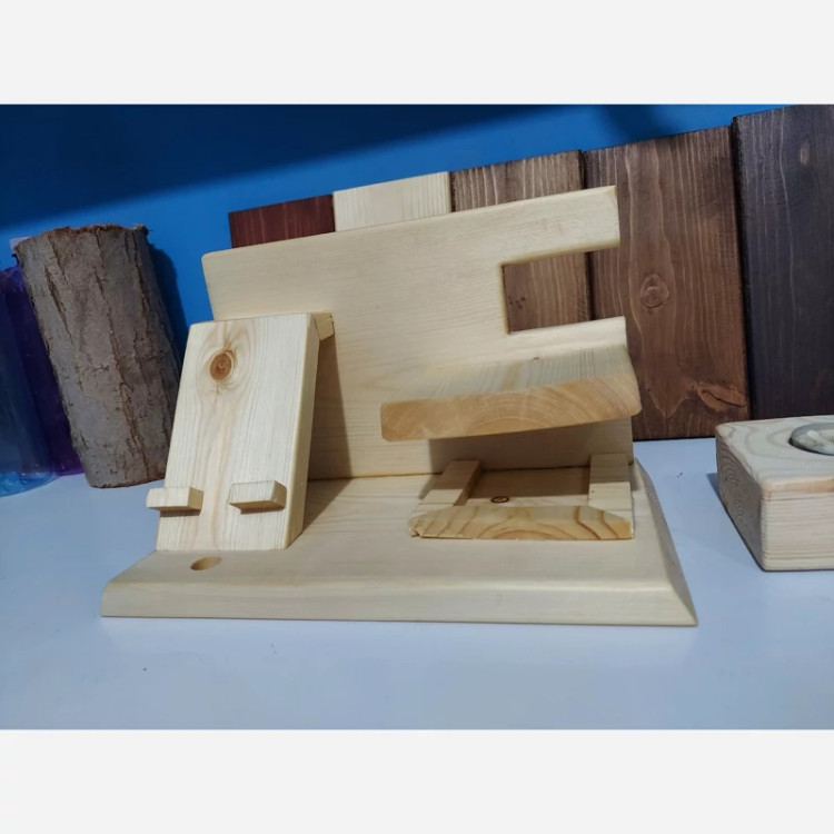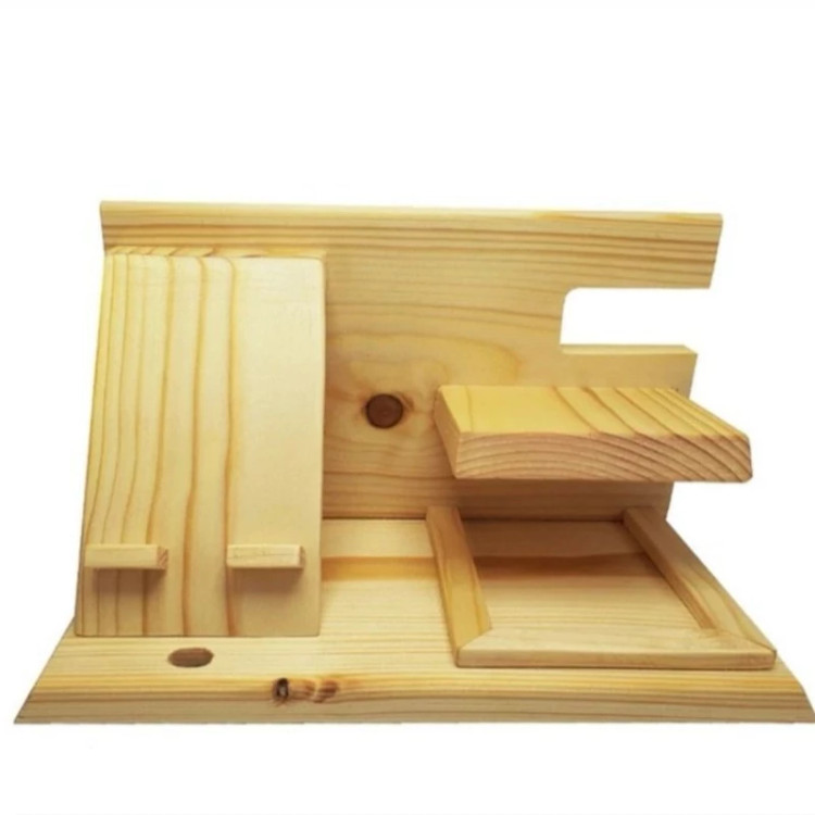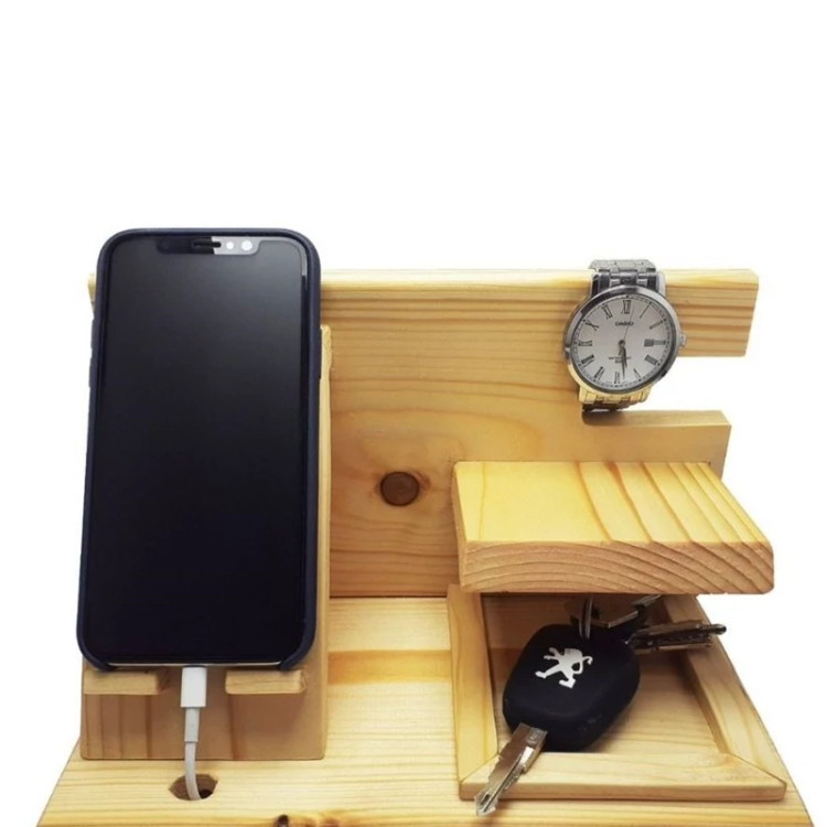 استند جا موبایلی چوبی که مناسب برای روی میز و محیط کار میتوان از ان استفاده کرد علاوه بر جای موبایل جای ساعت و سوئیچ خودرو نیز در ان تعبیه شده است که از جنس چوب طبیعی ساخته شده . توجه : رنگ محصول به صورت پیش فرض به صورت قهوه ای ارسال می شود . درصورت تغییر رنگ قبل از ارسال در قسمت گفتگو ها اطلاع دهید . ( امکان ساخت با ابعاد سفارشی نیز وجود دارد )
