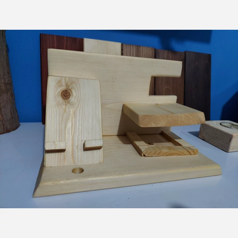 استند جا موبایلی چوبی که مناسب برای روی میز و محیط کار میتوان از ان استفاده کرد علاوه بر جای موبایل جای ساعت و سوئیچ خودرو نیز در ان تعبیه شده است که از جنس چوب طبیعی ساخته شده . توجه : رنگ محصول به صورت پیش فرض به صورت قهوه ای ارسال می شود . درصورت تغییر رنگ قبل از ارسال در قسمت گفتگو ها اطلاع دهید . ( امکان ساخت با ابعاد سفارشی نیز وجود دارد )