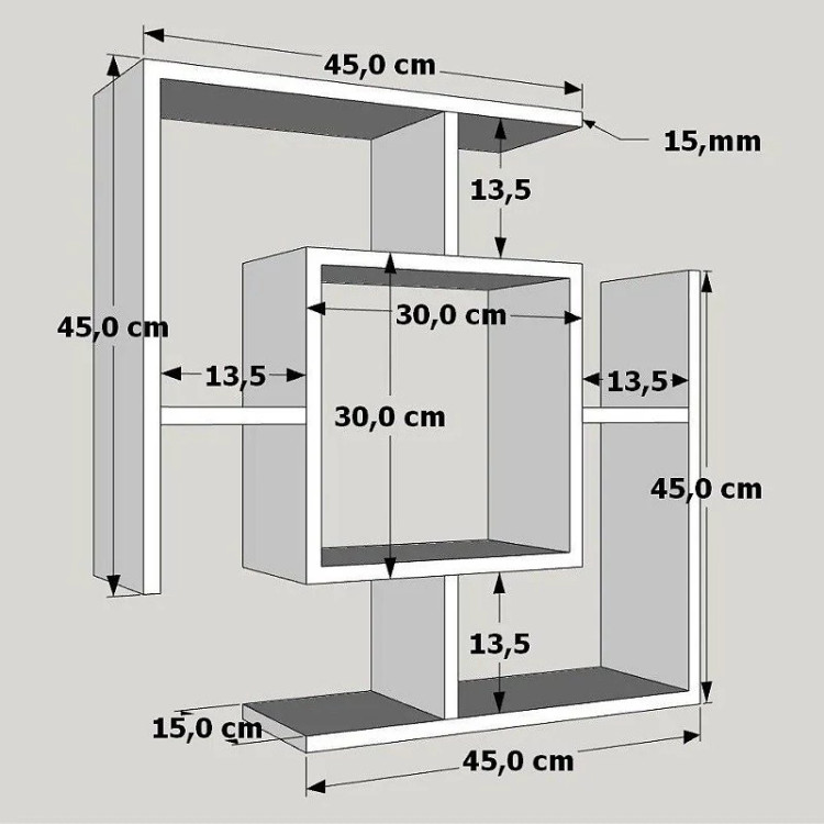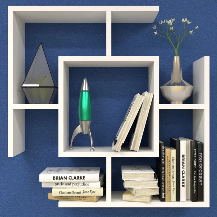 شلف دیواری ام دی اف طرح مربعی رنگ سفید و نقره ای