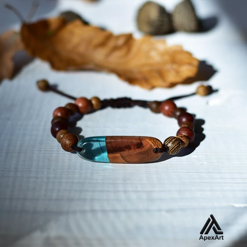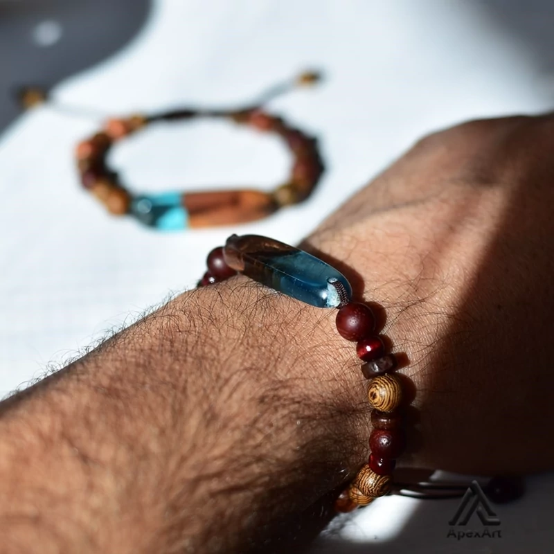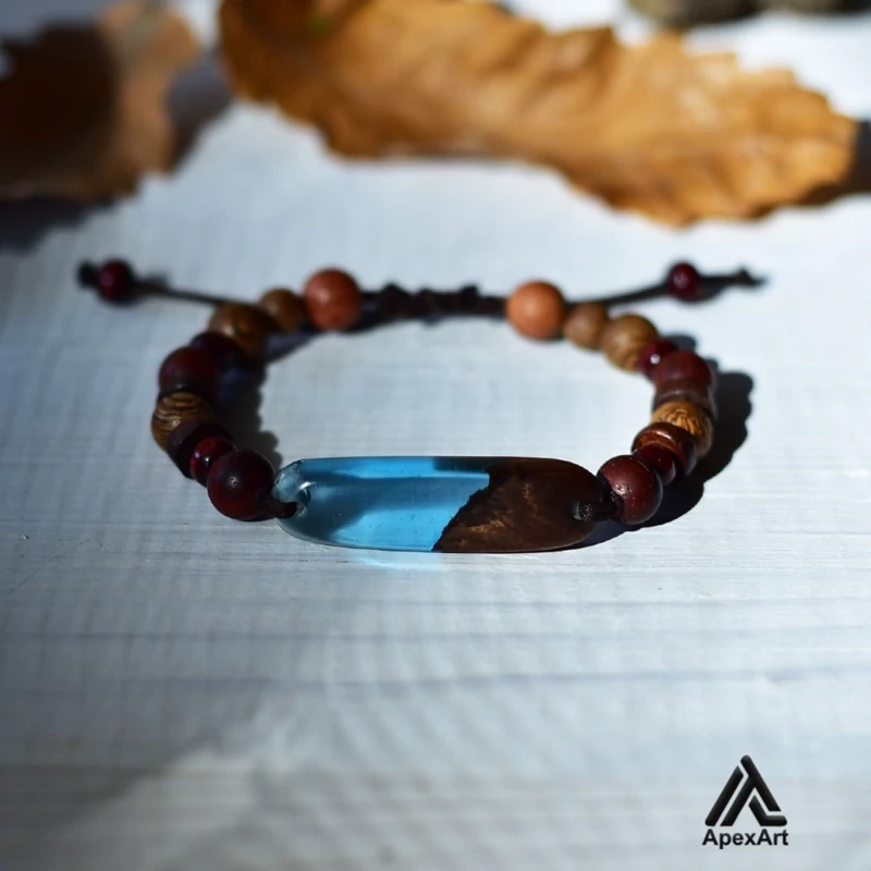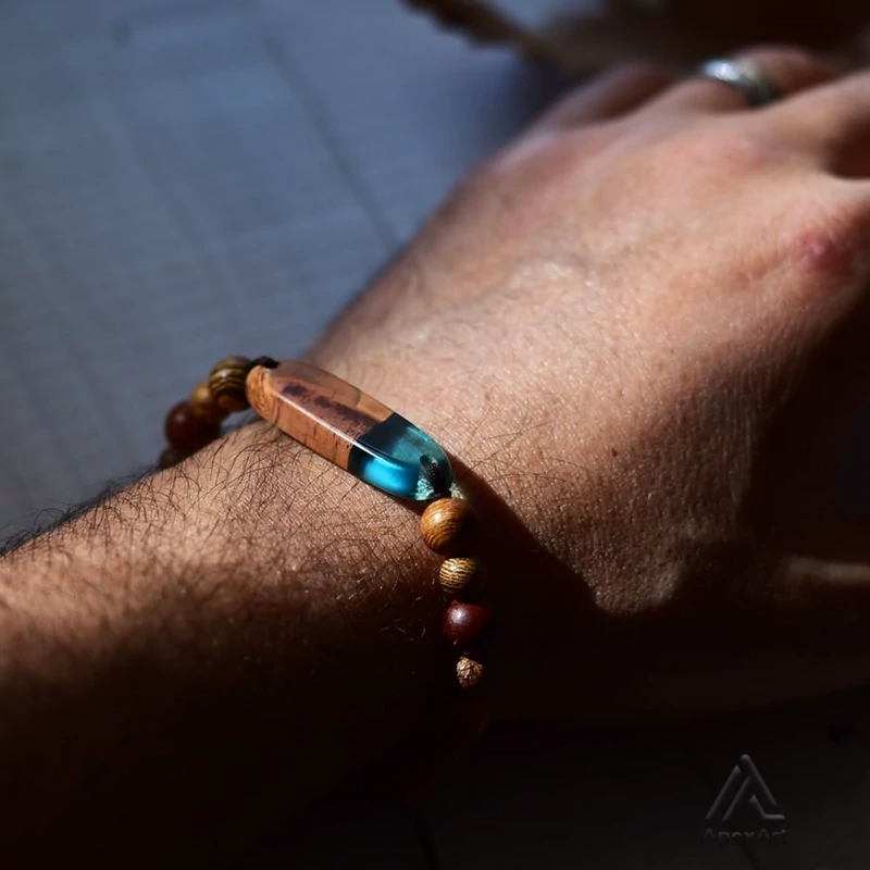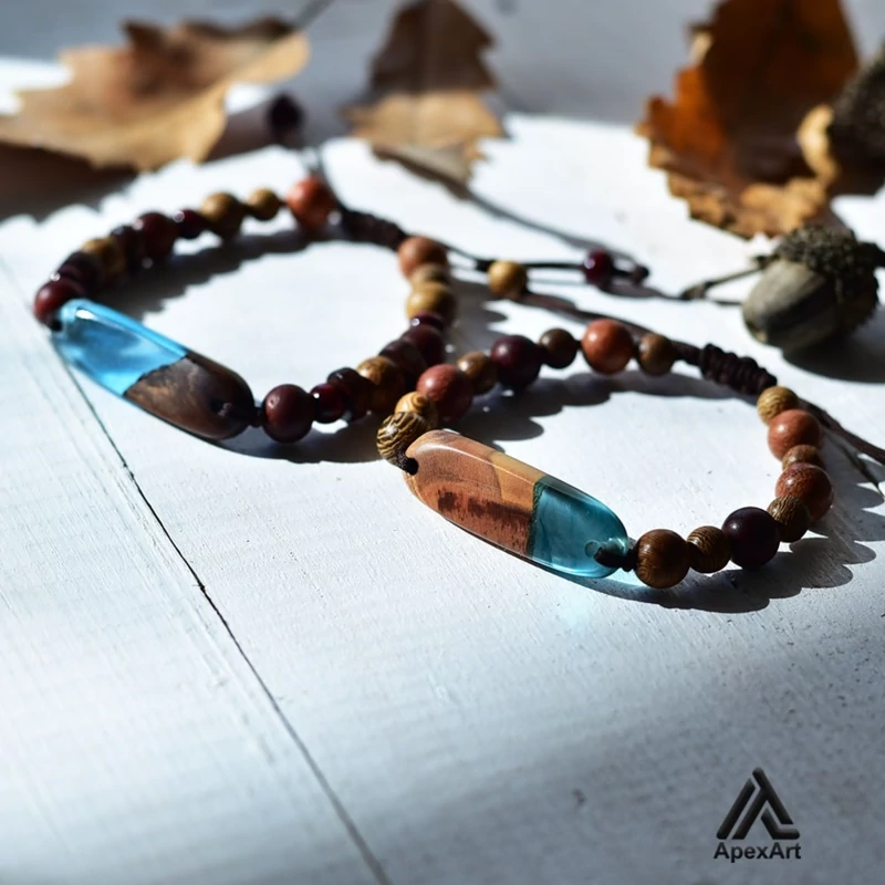 یه ست زیبا دستبند چوب و رزین که به زیبایی به صورت کاملا دستساز ساخته شده و از مهره های چوبی آبنوس که جزء بهترین چوب های دنیا هست استفاده شده است.