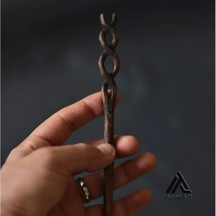 در دل این پین موی ظریف، رقصی از هنر و طبیعت جریان دارد. ساخته شده از چوب پسته، این شاهکار کوچک داستان درختی کهن را روایت میکند که اکنون در قالبی نو، زندگی دوباره یافته است.