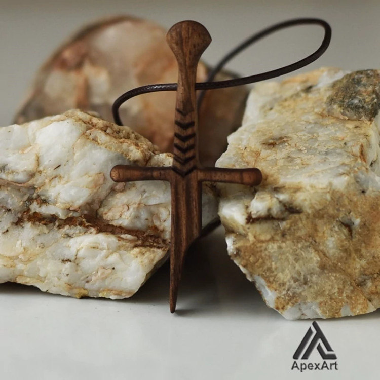 گردنبند چوبی طرح شمشیر شکسته نارسیل هاما چوب، تلفیقی از هنر دست، عشق به ادبیات فانتزی و نمادگرایی عمیق است. این اثر ارزشمند که از چوب گردوی مرغوب با دستان هنرمندان هاما چوب تراشیده و پرداخت شده، بازآفرینیای از شمشیر افسانهای نارسیل (Narsil)، میراث خاندان اِلندیل و نماد پادشاهی گاندور است.