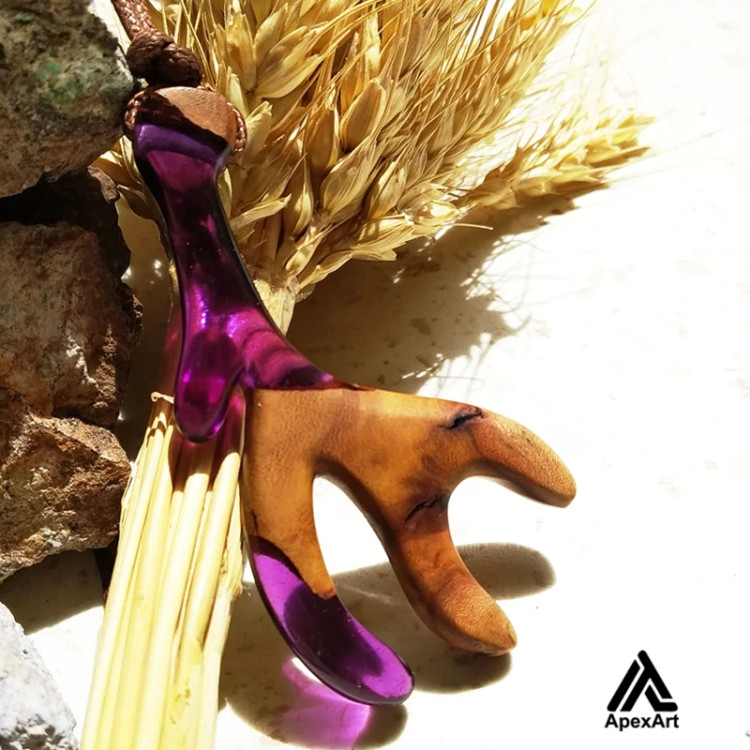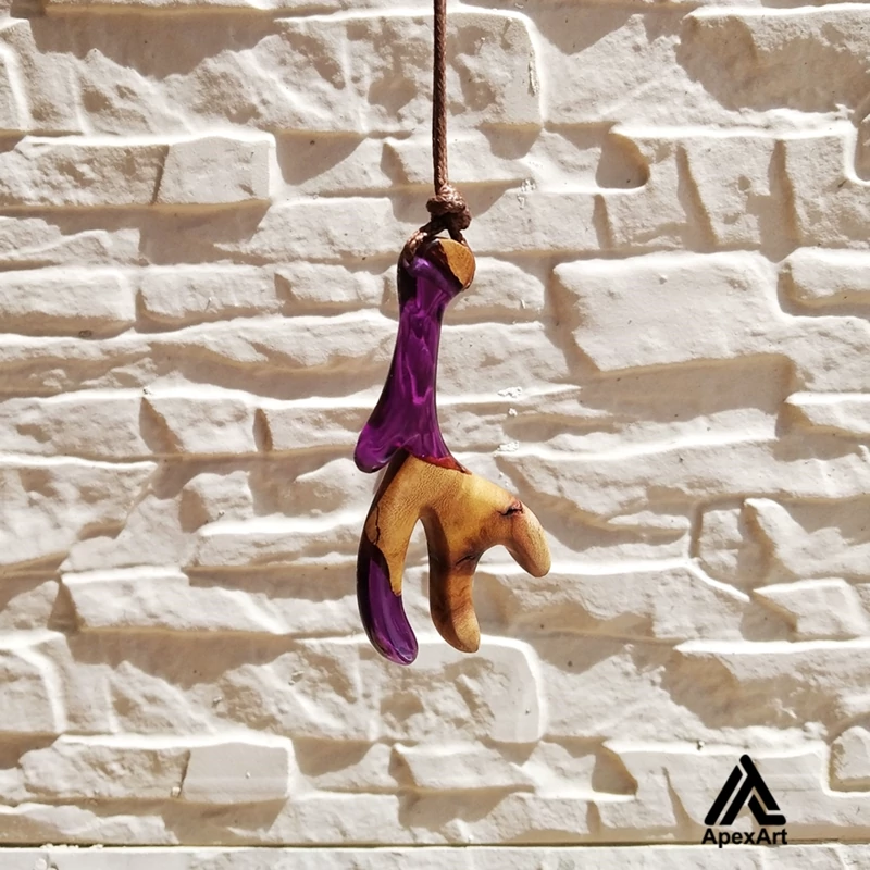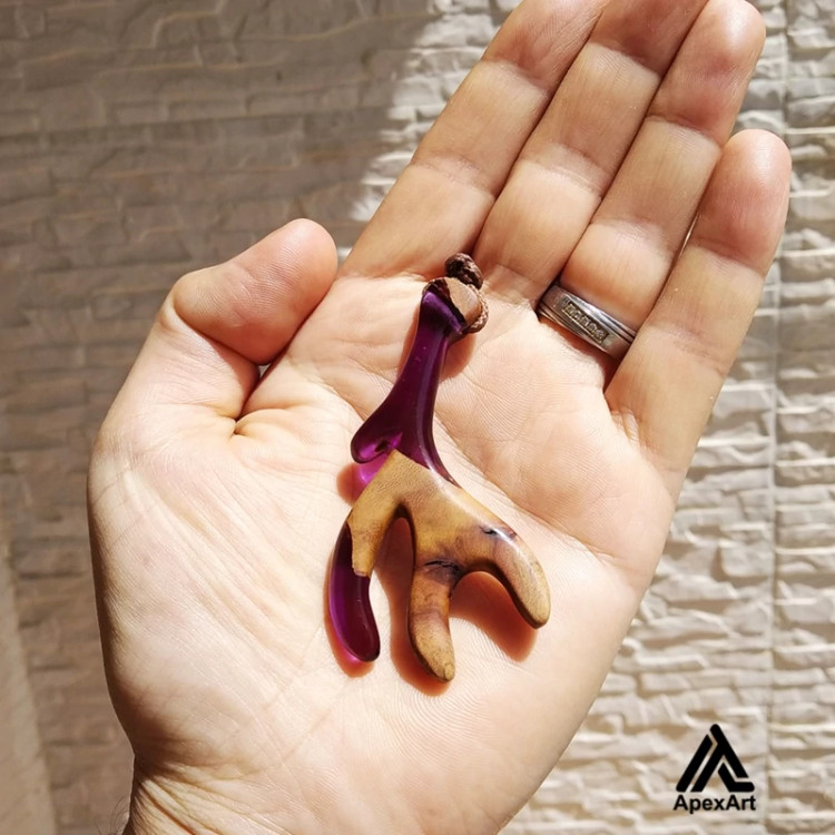 این گردنبند از چوب و رزین ساخته شده که تلفیقی زیبا رو خلق کرده