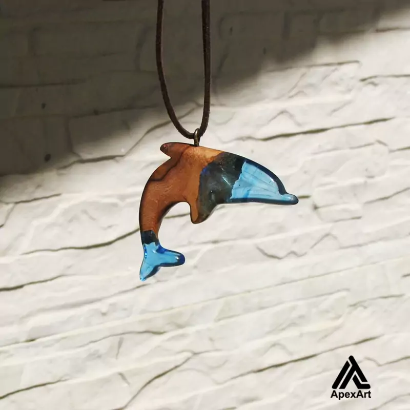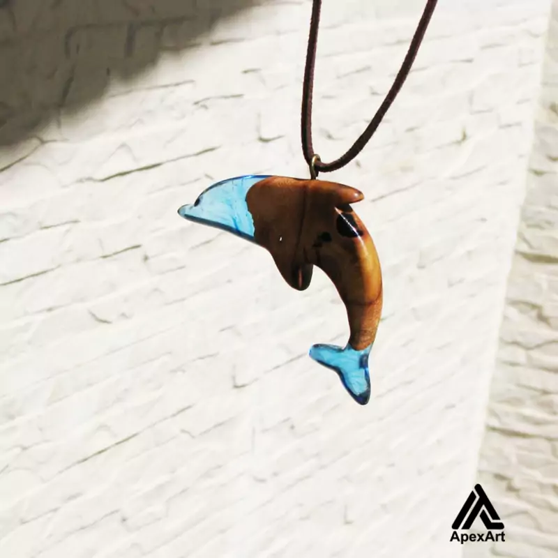 یک کار تلفیقی زیبا از چوب گردو و رزین اپوکسی که به شکل یک دولفین ساخته شده است همانطور که در تصاویر می بینید برای سر و دم دولفین از رزین استفاده شده است.