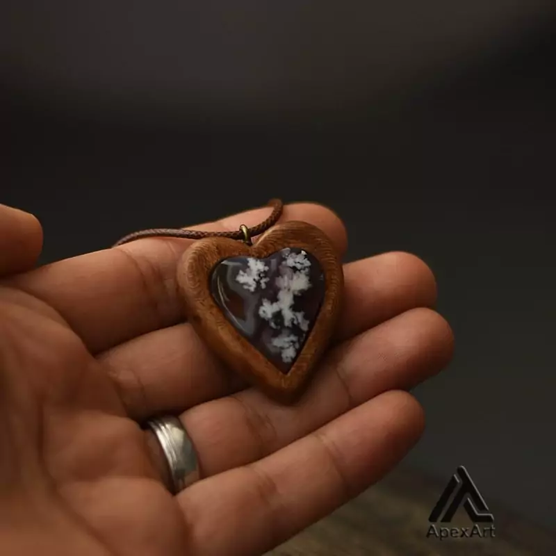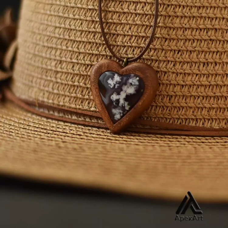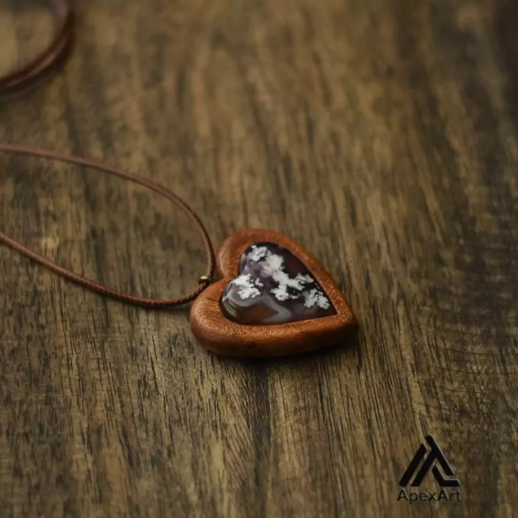 گردنبند چوب و عقیق طرح قلب | اثری منحصربهفرد از طبیعت | هاما چوب
