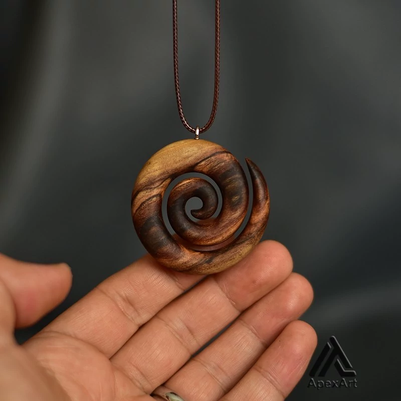 گردنبند چوبی طرح اسپیرال حلزونی