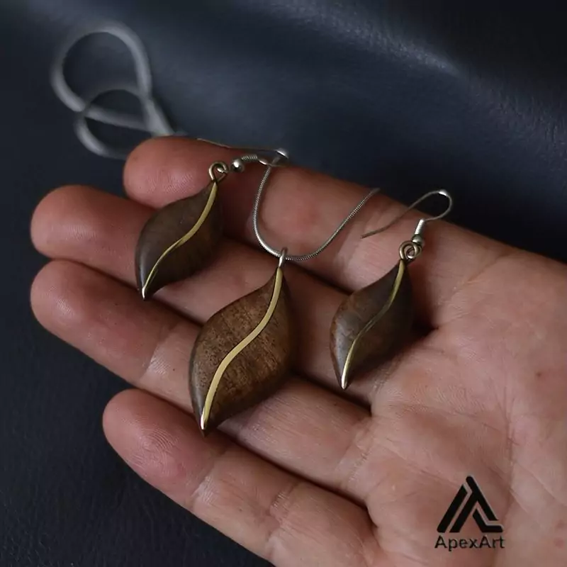 این ست گردنبند و گوشواره مثلثی شکل، نمادی از ظرافت و اصالت است. چوب گرم و زنده عناب در کنار رزین سبز یشمی، تضادی دلنشین و چشمنواز ایجاد کرده که یادآور جنگلهای سرسبز و درختان کهنسال است.