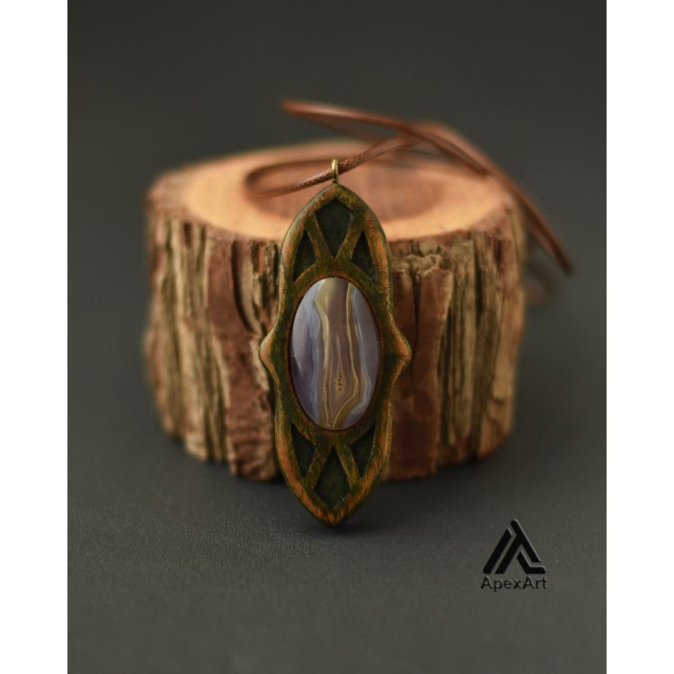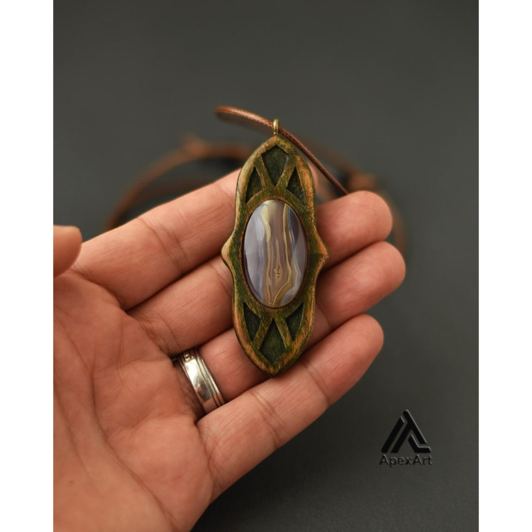 یه گردنبند چوبی خاص که با نگین عقیق شجری مزین شده، یه کار خاص دست ساز که به زیبایی هر چه تمامتر کار شده.
