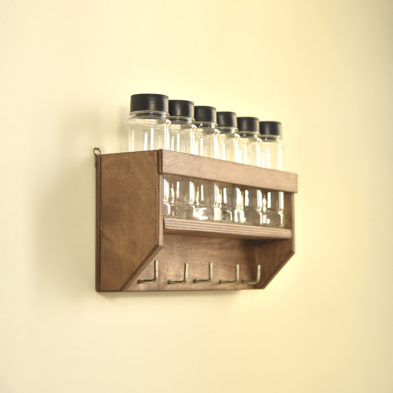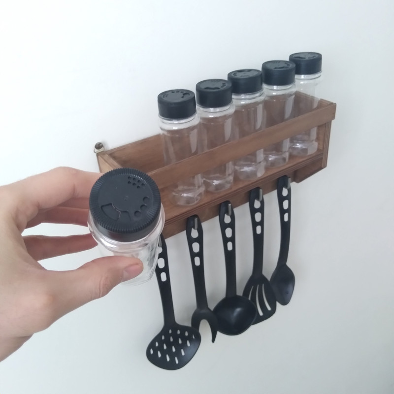 تعداد قطعات: ۶ عدد شیشه ادویه + ۱ عدد استند چوبی
