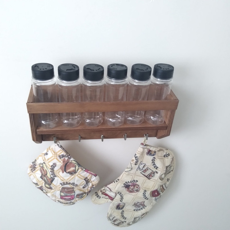 جنس پلی وود درجه یک، در هنگام خرید جا ادویه ای به لوگوی برند پارسوماش بر روی بسته بندی محصول توجه فرمایید، اتصال به دیوار توسط دو عدد میخ یا پیچ و رول پلاک، جنس ظروف جا ادویه ای پلاستیک است،