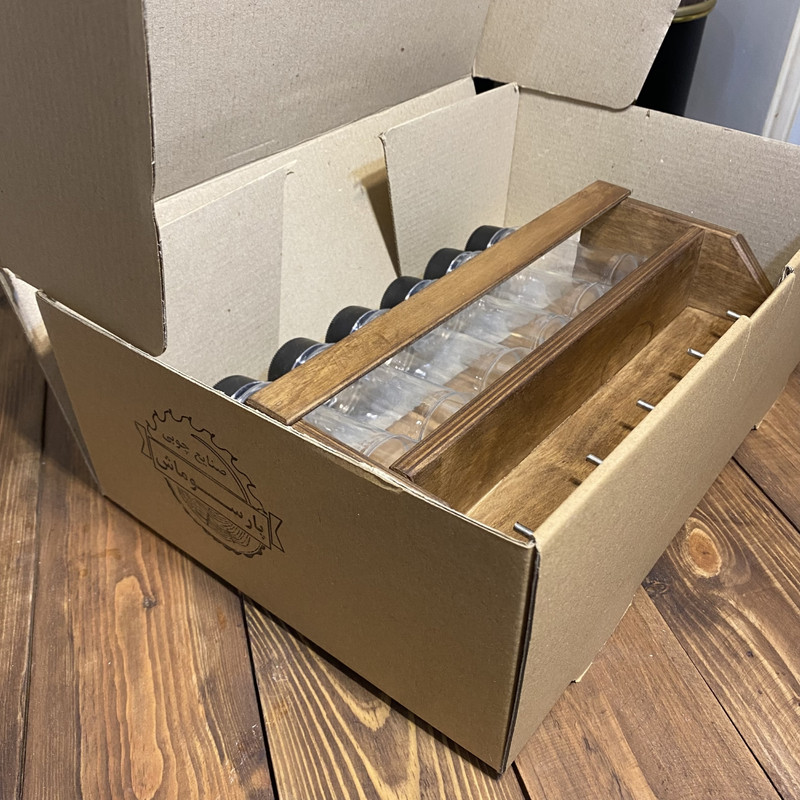 چوب طبیعی، ۶ شیشه، قابل سفارشیسازی.