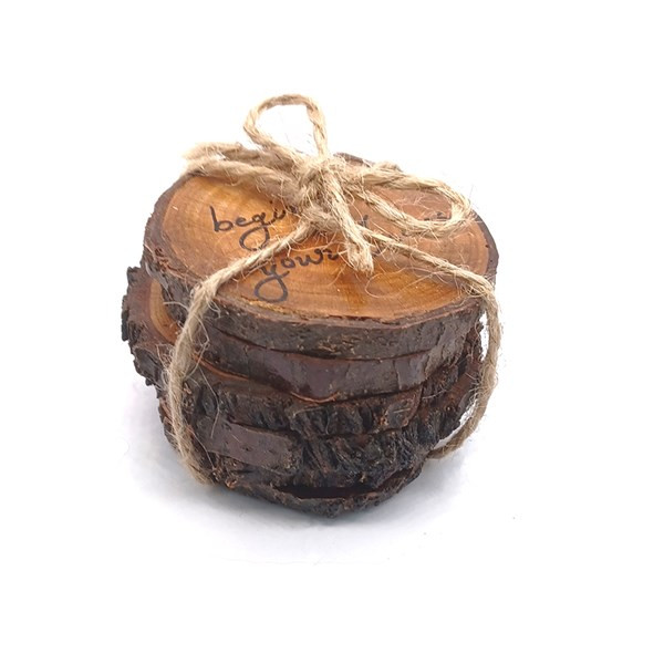 ست ۶ تایی زیرلیوانی چوبی | برشهای طبیعی از چوب به شکل کالباسی | هاما چوب