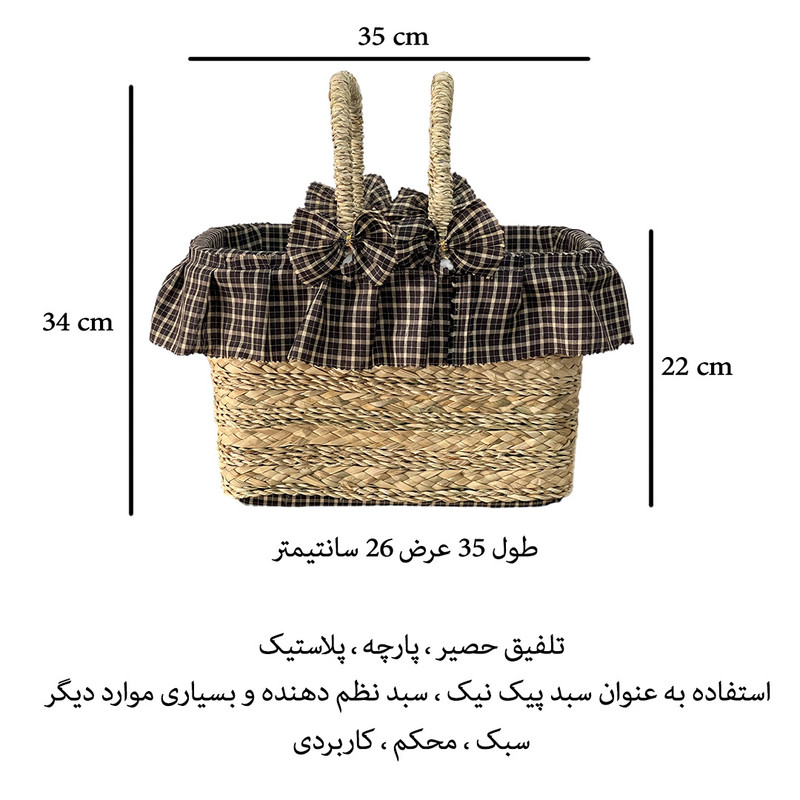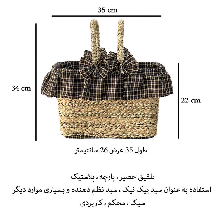 سایر توضیحات: از این سبد میتوانید به عنوان سبد پیک نیک و سبد نظم دهنده لوازم آشپزخانه استفاده کنید.
