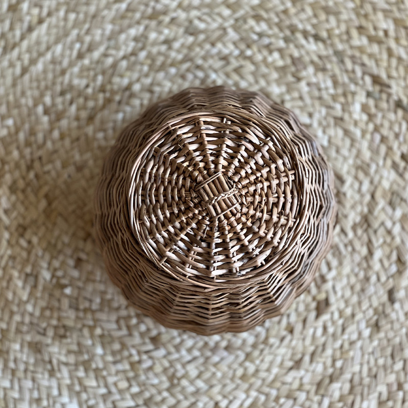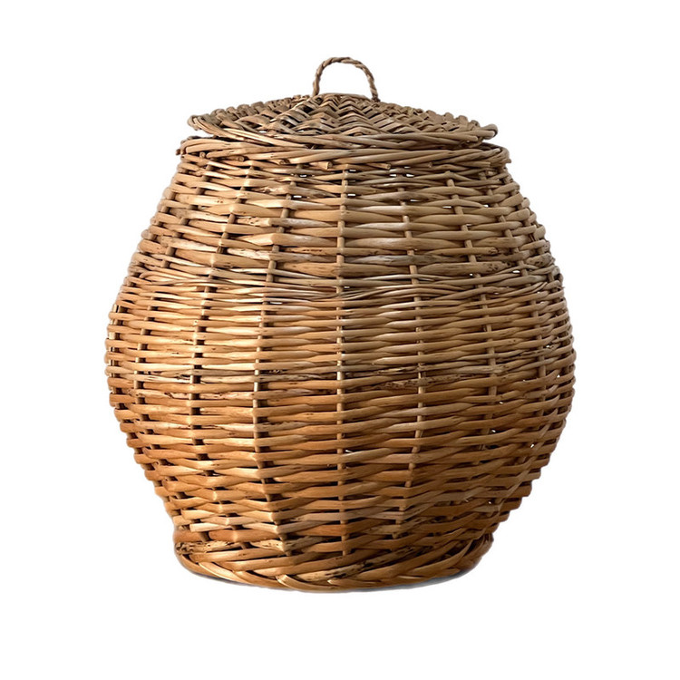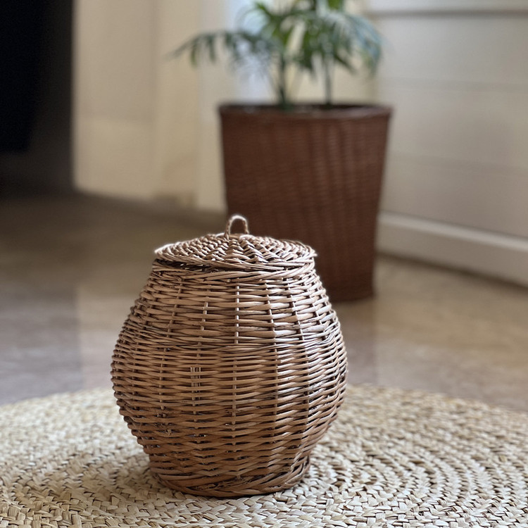 سبد حصیری دردار مدل خمره | بافت مروار با درپوش چوبی | هاما چوب