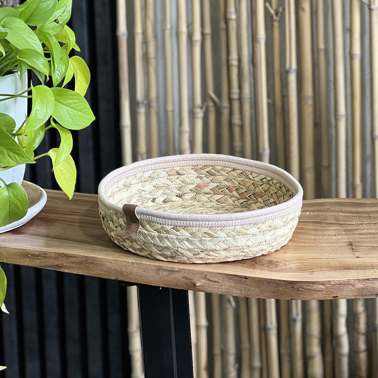 سبد حصیری مدل گرد، ترکیبی زیبا از هنر دست و کارایی است. این سبد از الیاف طبیعی حصیر و قیطان بافته شده و به دلیل طراحی سنتی، جلوهای گرم و دلنشین به فضای منزل میبخشد. از آن میتوانید برای سبد نان و سبزی، سبد نظم دهنده، سبد دکوری و بسیاری موراد دیگر استفاده کنید. این سبد به روش قیطان دوزی تولید شده است، قطر آن 25 سانتیمتر و ارتفاع این سبد 7 سانتیمتر میباشد.