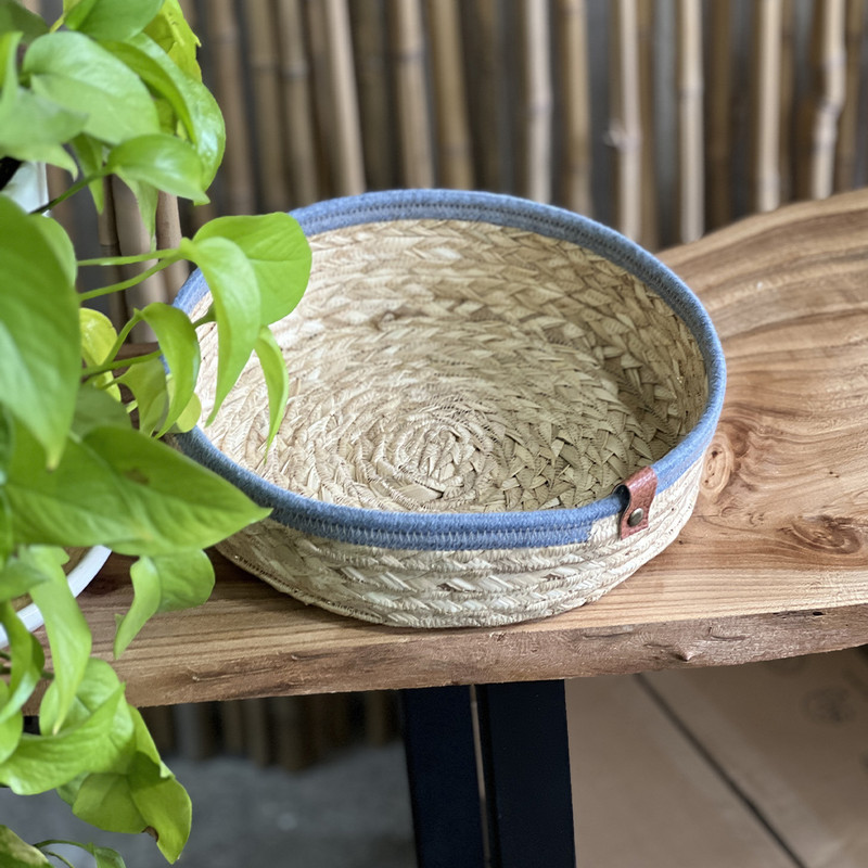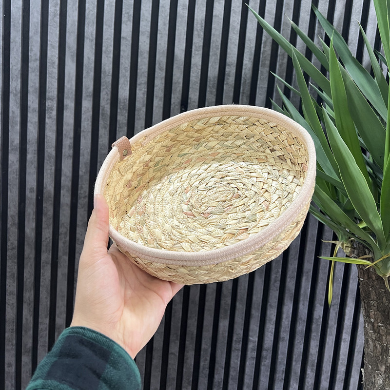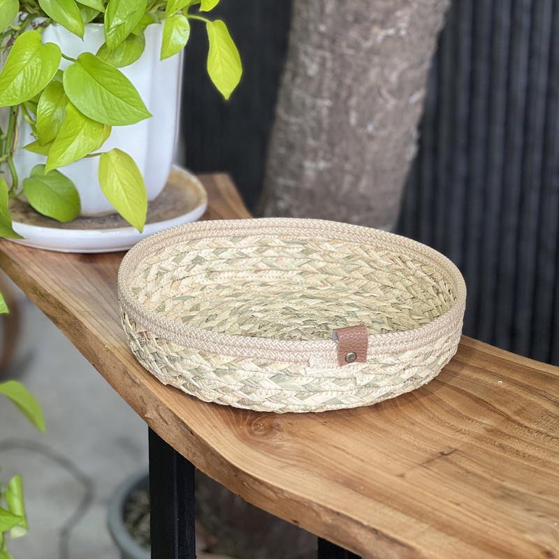 سبد حصیری مدل گرد، ترکیبی زیبا از هنر دست و کارایی است. این سبد از الیاف طبیعی حصیر و قیطان بافته شده و به دلیل طراحی سنتی، جلوهای گرم و دلنشین به فضای منزل میبخشد. از آن میتوانید برای سبد نان و سبزی، سبد نظم دهنده، سبد دکوری و بسیاری موراد دیگر استفاده کنید. این سبد به روش قیطان دوزی تولید شده است، قطر آن 25 سانتیمتر و ارتفاع این سبد 7 سانتیمتر میباشد.