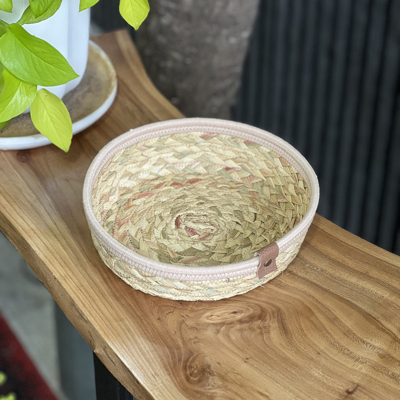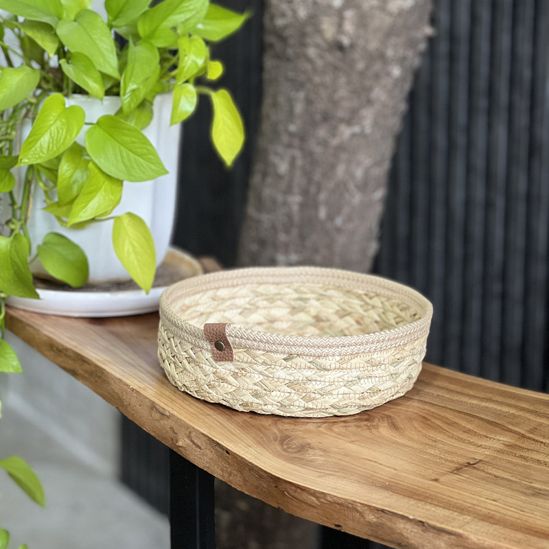 سبد حصیری مدل گرد، ترکیبی زیبا از هنر دست و کارایی است. این سبد از الیاف طبیعی حصیر و قیطان بافته شده و به دلیل طراحی سنتی، جلوهای گرم و دلنشین به فضای منزل میبخشد. از آن میتوانید برای سبد نان و سبزی، سبد نظم دهنده، سبد دکوری و بسیاری موراد دیگر استفاده کنید. این سبد به روش قیطان دوزی تولید شده است، قطر آن 20 سانتیمتر و ارتفاع این سبد 7 سانتیمتر میباشد.