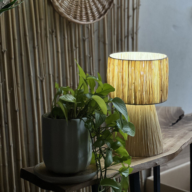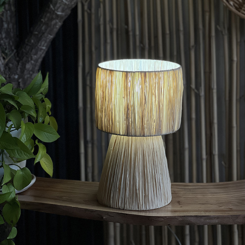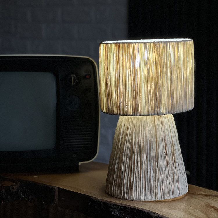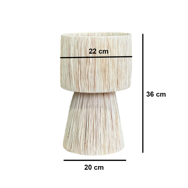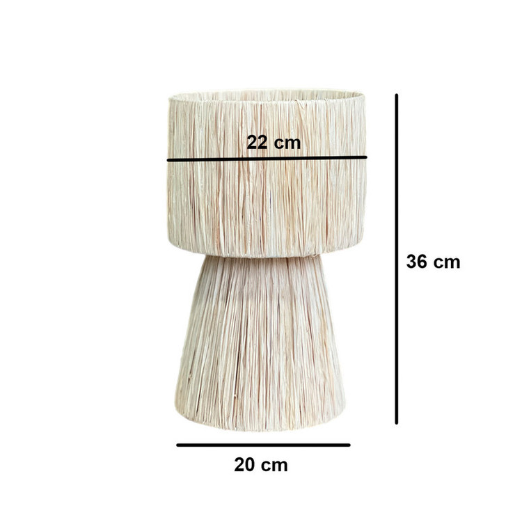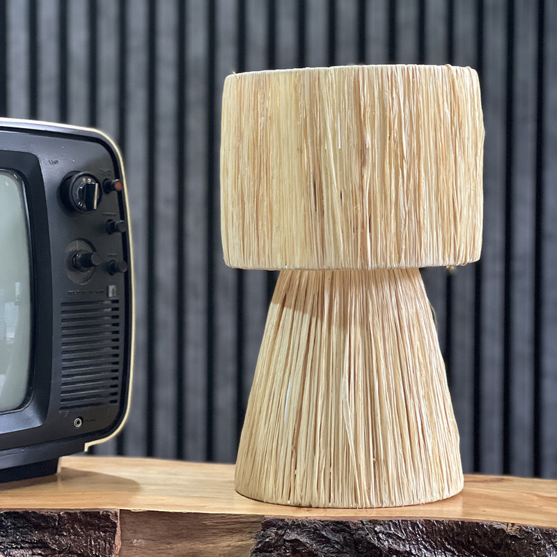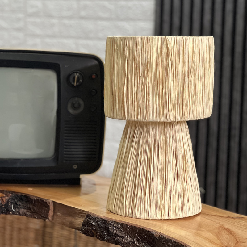 این آباژور رومیزی زیبا از الیاف طبیعی رافیا، انتخابی ایدهآل برای علاقهمندان به دکورهای گرم و روستیک است. بدنه آن با فریم فلزی مستحکم ساخته شده و با بافت منظم و دقیق رافیا، جلوهای خاص به محیط شما میبخشد.