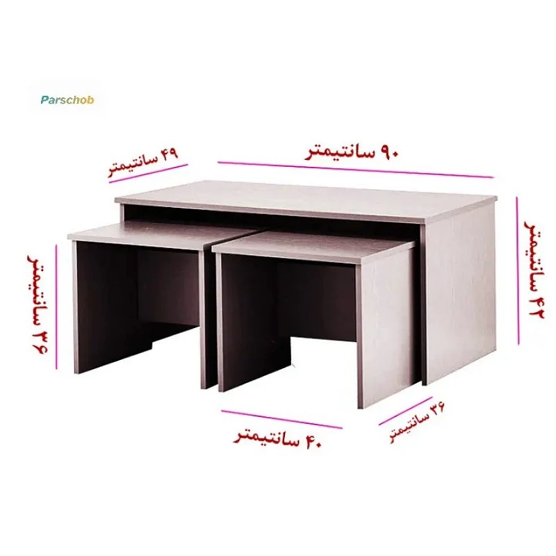 میز جلو مبلی شامل سه تیکه هست یک عدد میز بزرگ و دو عسلی کوچک
