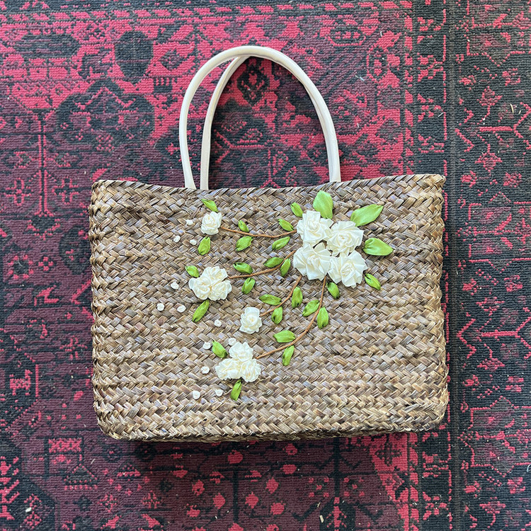ویژگی برجسته تزئین با گل سپیده بهصورت بافت روی یک سمت زنبیل