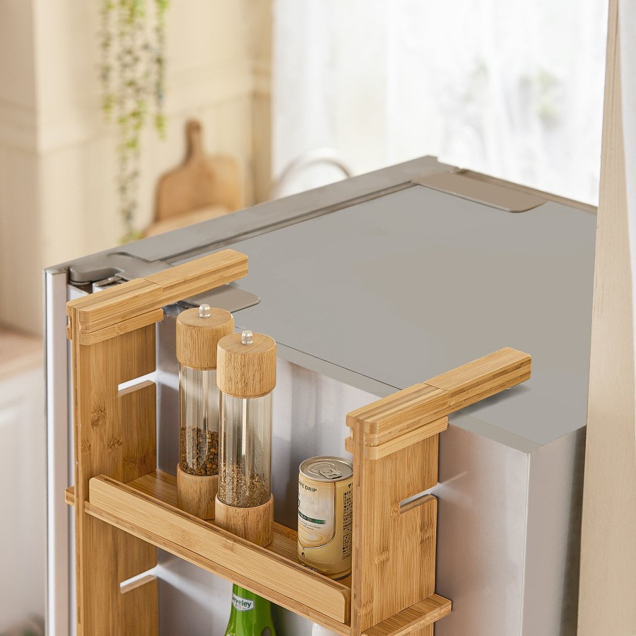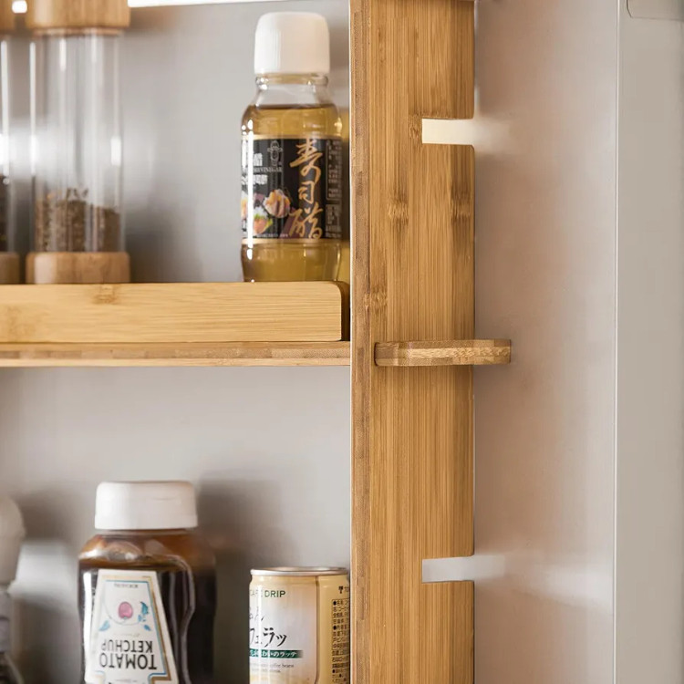قفسه آویز یخچالی سه طبقه بامبو مدل KCR03 | نظمدهی هوشمند آشپزخانه | هاما چوب