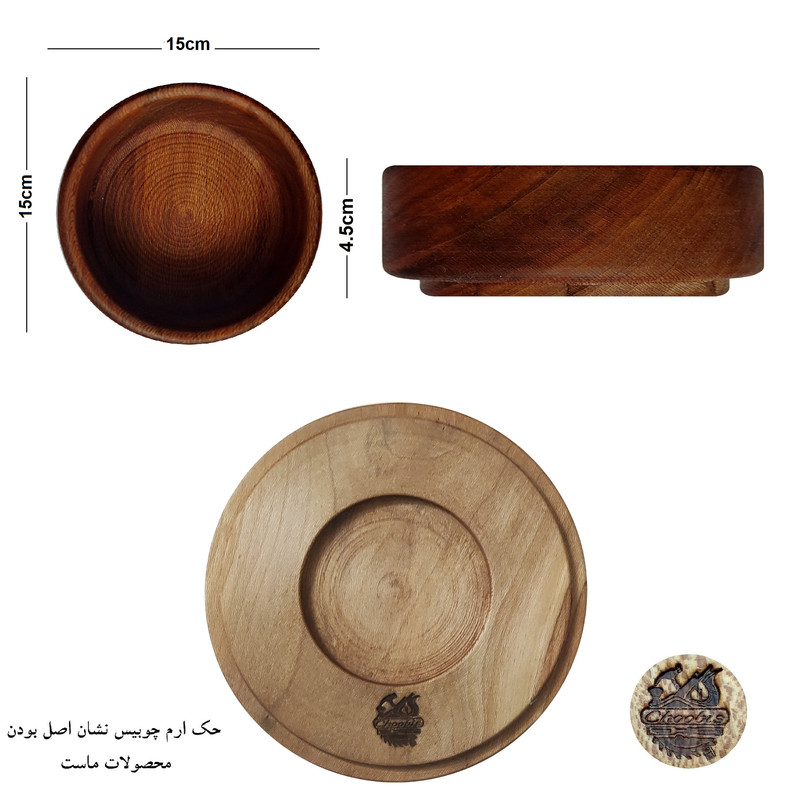 ساخته شده از چوب طبیعی درخت چنار پوشش خوراکی و گیاهی همل به دلیل طبیعی بودن بافت چوب کمی اختلاف رنگ در محصولات وجود دارد