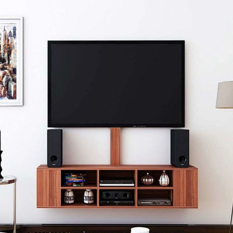 شلف تلوزیون ام دی اف کاوی مدل DT120 با عرض: 140 , ارتفاع: 70 , عمق: 30 (سانتی متر) که به دیوار نصب میشود. از جنس ام دی اف (mdf) مغزی فشرده شرکتی و از ام دی اف با قطر 3 تا 16 میلیمتر استفاده شده است، دارای شش قسمت است.